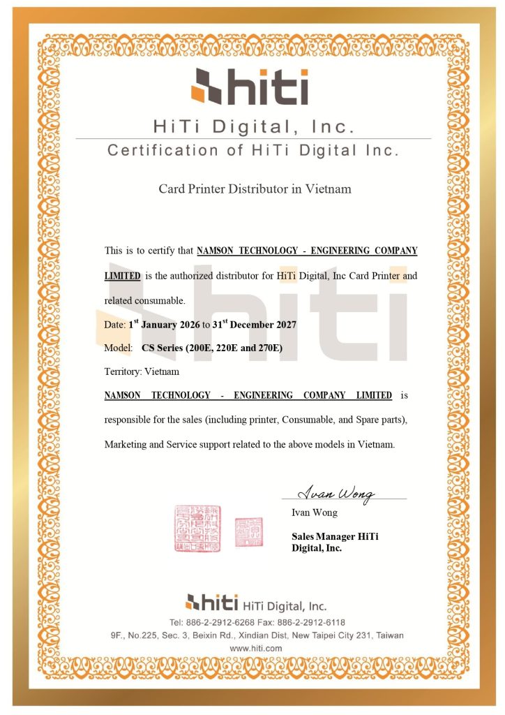 Chứng nhận Namson SmartID là nhà phân phối của Hiti 2026